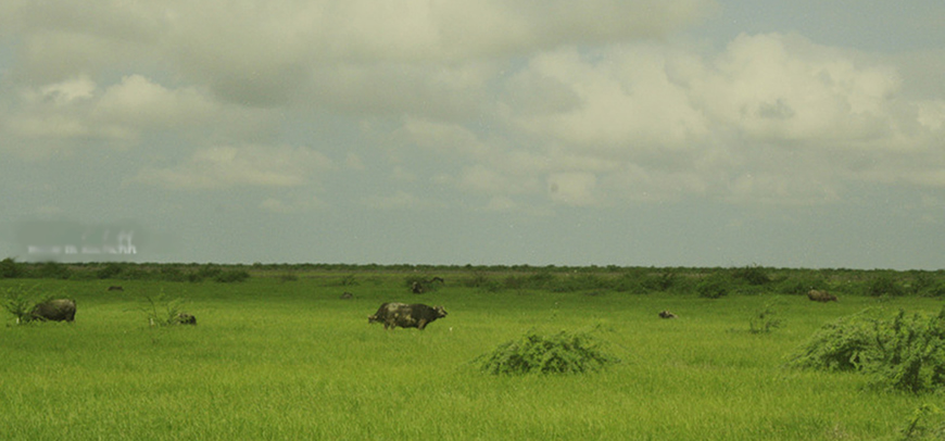 During the fifties, Banni was predominantly grassland, with a very low density of trees and bushes. It was considered one of the largest and finest Asian grasslands. At that time there were more than 40 species of grasses, but nowadays there are just around 15 species, due to the planting of a non indigenous thorny shrub (prosopisjuliflora) by the Forest Department in the Sixties to control the soil salinity. This thorny shrub known locally as gandobaawal, literally crazy thorn-bush, grew very fast, destroying several native species and eroding huge tracks of the grassland. Locals have learned to extract gum and to make charcoal from this plant as a source of livelihood.
